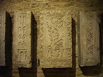 On voit aussi à cette époque l'apparition d'églises et d'abbayes au niveau des anciens oratoires du Bas-Empire, d'autres issus de monuments laïcs antérieurs tels qu'à Saint-Pierre-aux-Nonnains, ou d'autres créés ex nihilo notamment l'abbaye de Saint-Arnould[5], à l'époque hors des murs de la cité au niveau de l'église Sainte-Thérèse actuelle, refermant les tombeaux de souverains mérovingiens puis carolingiens.