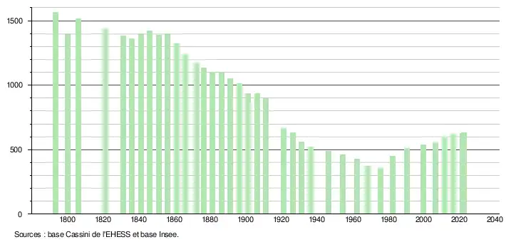 - ↑ Fiches Insee - Populations de référence de la commune pour les années 2006, 2007, 2008, 2009, 2010, 2011, 2012, 2013, 2014, 2015, 2016, 2017, 2018, 2019, 2020, 2021 et 2022.