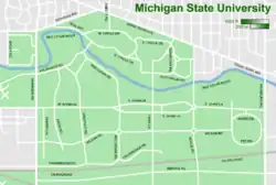 Le campus de MSU est situé à East Lansing, sur les rives de la rivière Red Cedar. Le développement du campus a débuté en 1856 avec trois bâtiments. Aujourd’hui, le campus s’étend sur 2 105 ha sur lesquels ont été bâtis 676 bâtiments, dont 203 destinés à l'enseignement, 154 à l’agriculture et 254 au logement et aux services de restaurations. 160 km de trottoirs et 43 km de routes sillonnent le campus. La Michigan State University possède également 9 000 ha de terre à l’extérieur du campus.