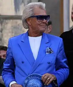 Il se fait remarquer par son apparence vestimentaire extravagante et kitsch, dont notamment des lunettes bleues et un brushing décoloré[14].