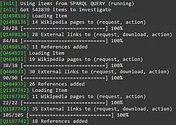 Capture d'écran de la CLI de référence de microdonnées Addwiki Wikidata