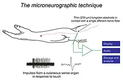 La microneurographie est utilisée pour étudier et comprendre la neurophysiologie des fibres nerveuses (aussi bien afférentes qu'efférentes) du système nerveux périphérique[1]. Les études réalisées chez l'homme offrent sur les études animales l'avantage de la description précise des sensations éprouvées par le sujet examiné ce qui a permis une amélioration considérable de la compréhension des champs de réception des mécanorécepteurs.