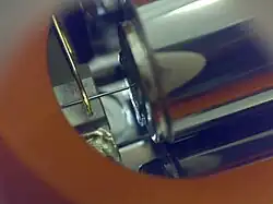 Le seul moyen d'atteindre la précision suffisante pour le positionnement est d'utiliser des céramiques piézoélectriques. En fait, c'est ce point qui a retardé l'invention de l'appareil car l'idée existait depuis les années 1960, mais aucun système de positionnement adapté n'existait alors.