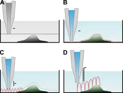 La microscopie à sonde locale (MSL) ou microscopie en champ proche (MCP) ou scanning probe microscopy (SPM) en anglais est une technique de microscopie[2] permettant de cartographier le relief (nano-topographie) ou une autre grandeur physique en balayant la surface à imager à l'aide d'une pointe très fine (la pointe est idéalement un cône se terminant par un seul atome).