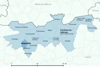 - ↑ « Orthodromie entre Mignerette et Ladon », sur fr.distance.to (consulté le ).