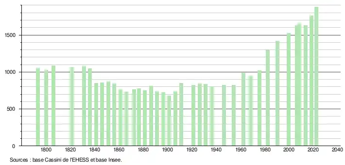- ↑ Fiches Insee - Populations de référence de la commune pour les années 2006, 2007, 2008, 2009, 2010, 2011, 2012, 2013, 2014, 2015, 2016, 2017, 2018, 2019, 2020, 2021 et 2022.