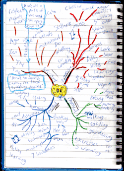 Les années 1970 voient le plein boum de la théorie de la spécialisation hémisphérique. Les activités de l'hémisphère gauche du cerveau seraient plus : logique, pensée rationnelle, classement, langage ; et les activités de l'hémisphère droit seraient créativité, pensée holistique, capacité de synthèse. Au-delà d'une localisation des facultés cérébrales dans des aires — fortement controversée, surtout par la neurologie contemporaine —, c'est surtout un recensement de ces facultés naturelles qui intéresse Tony Buzan. Ainsi, selon lui, contrairement aux possibilités offertes par le cerveau, nos habitudes de réflexions et d'écriture ont tendance à fortement privilégier certaines capacités au détriment d'autres. Les notes classiques omettent souvent l'utilisation de couleurs, de rythme, de dessins, de liens, d'ajouts, etc.
