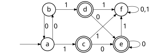 - ↑ Hopcroft, Motwani et Ullman 2007, Section 4.4.3, "Minimization of DFA's", p. 159.