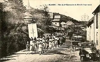 Le , jour de Pâques, le père Hugues de Baumes, vicaire de Blanot — petit village bourguignon — distribuait la communion pendant la messe, en l'église Saint-Andoche. À cette époque, c’était une coutume que deux personnes maintiennent une toile ouverte devant le prêtre, pendant les célébrations festives qui réunissaient une grande foule, pour empêcher qu’une hostie ne tombe à terre.