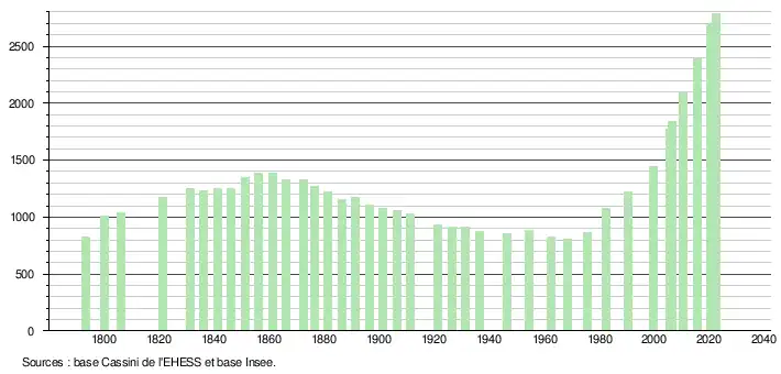 - ↑ Fiches Insee - Populations de référence de la commune pour les années 2006, 2007, 2008, 2009, 2010, 2011, 2012, 2013, 2014, 2015, 2016, 2017, 2018, 2019, 2020, 2021 et 2022.