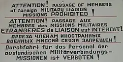 Les missions militaires de liaison (MML ou MLM, abréviation de l'anglais Military liaison missions) ou missions militaires étrangères de liaison[1] ont joué un rôle important dans le recueil de renseignement militaire pendant la guerre froide. Elles ont aussi permis de confirmer qu'aucune des parties signataires ne menait de préparatifs militaires significatifs, ce qui a joué en faveur d'un apaisement. Créées après la Seconde Guerre mondiale à la suite d'accords entre les alliés occidentaux (États-Unis, France et Royaume-Uni) et l'URSS, elles ont inspecté les zones occupées d'Allemagne de 1946 à 1990.