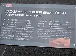 - ↑ Article A Glorious Heritage - Chronological history of Mitsubishi Motor Sports activities, MITSUBISHI LANCER 1600 GSR, sur le site officiel www.mitsubishi-motors.co.jp