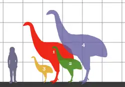 Le moa mesurait entre 2,5 et 3,5 m de haut (jusqu'à 4 m pour les plus grands mâles) et pesait entre 200 et 250 kg (jusqu'à 300 kg pour les plus gros mâles).