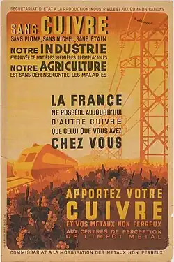 La mobilisation des métaux non ferreux est un événement lié au contexte de la Seconde Guerre mondiale et plus particulièrement à l'occupation de la France par l'Allemagne nazie. Celle-ci y fait réquisitionner à partir de l'année 1941 pour son effort de guerre une grande quantité de métaux non ferreux, tels que de l'étain, du plomb, du nickel ou du cuivre, afin d'approvisionner ses usines d'armement[1].