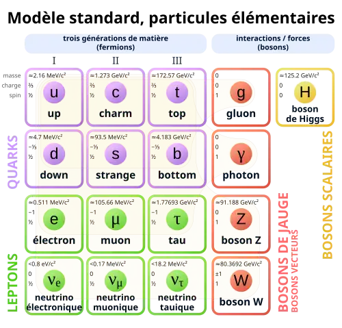 La découverte du boson de Higgs a permis le consensus et la mise à jour en 2014 du tableau des composants de la matière qui avait été établi en 2005 à l'occasion de l'année mondiale de la physique[4].