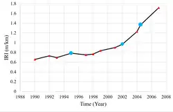 La santé de la chaussée est évaluée à l'aide de différents indicateurs de performance. Certains des indicateurs de performance les plus connus sont PCI, IRI et PSI[3]. Parmi les méthodes les plus fréquemment utilisées pour la modélisation de la performance des chaussées sont les modèles mécanistes, mécanistes-empiriques, les courbes de survie et les modèles de Markov. Récemment, des algorithmes d'apprentissage automatique ont également été utilisés à cette fin[2],[4].