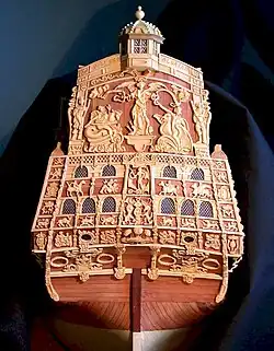 Les navires anciens avaient cette particularité d’être richement décorés, surtout pour les plus grands et les plus prestigieux d’entre eux. Les sculptures sont généralement principalement situées à la poupe et à la proue. C’est un long moment de plaisir pour le modéliste que de représenter à l’échelle ces ornementations, mais qui demande énormément de patience et de soin.