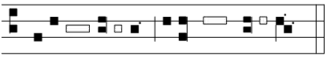 - Ou à la paire C-B (fa la) puis à des formules triples en ré mineur, typiquement accompagnées par des formules type du premier mode.