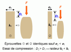 • lorsque l'on diminue la température, on observe le phénomène inverse : l'éprouvette de métal se raccourcit (contraction) donc son module d'Young augmente, tandis que l'éprouvette de polymère s'allonge (les chaînes sont moins agitées et se laissent étirer) donc son module d'Young diminue[réf. nécessaire].