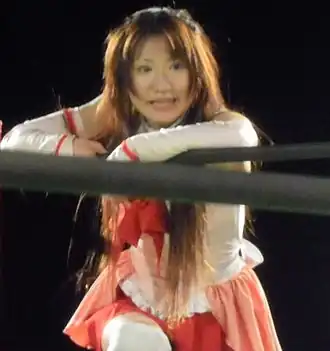 - ↑ (ja) « お天気お姉さんレスラーがシングル王座に挑戦! », sur Battle News, (consulté le ).