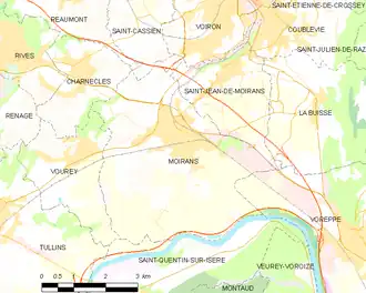 L'agglomération moirannaise se positionne entre les territoires de Voiron, Voreppe et de Rives, ces communes étant toutes situées dans la communauté d'agglomération du Pays voironnais.