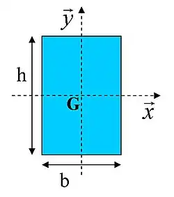 Il est également possible de considérer une section rectangulaire de largeur et de hauteur à laquelle il faut soustraire l'inertie de la portion considérée en trop, soit une autre section rectangulaire de largeur et de hauteur . La formule devient alors :