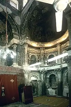 Le sanctuaire des triconques est très beau. Elle présente trois absides agrémentées de deux ordres de niches superposées séparées par de petites colonnes élégantes. Ces colonnes sont entièrement peintes et prêtent à la richesse et au caractère sacré des espaces. Le motif du tympan brisé surmontant chaque niche est particulièrement intéressant. Attachées à l'écran haikal (sanctuaire) qui protège le sanctuaire des espaces publics se trouvent des icônes des saints Shenute, Bishoi et Bigoul. Les absides nord et sud n'ont pas d'autels.