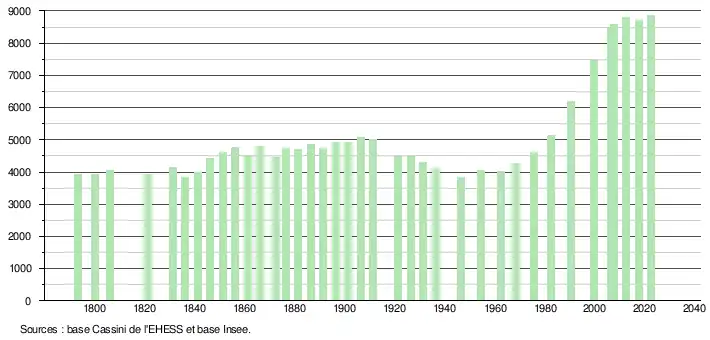 - ↑ Fiches Insee - Populations de référence de la commune pour les années 2006, 2007, 2008, 2009, 2010, 2011, 2012, 2013, 2014, 2015, 2016, 2017, 2018, 2019, 2020, 2021 et 2022.