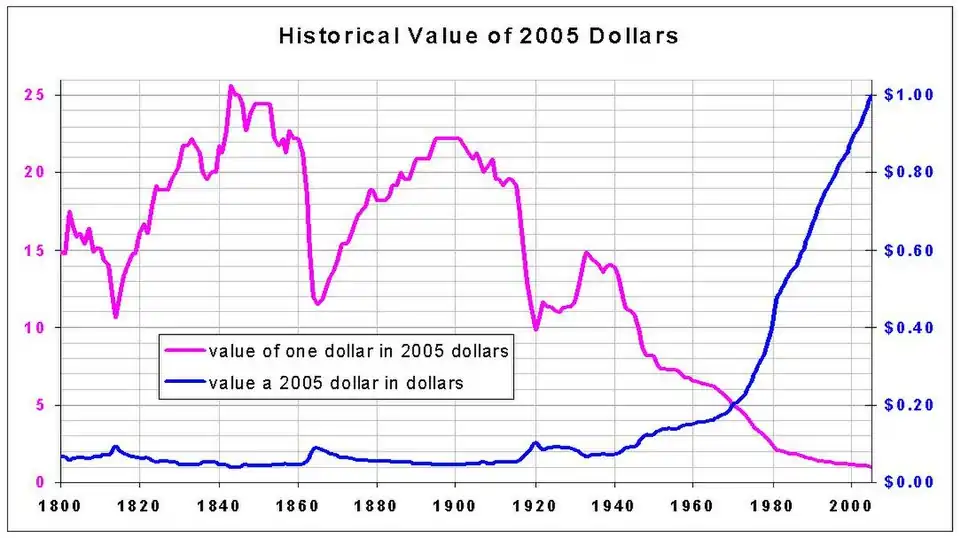 Voici par exemple, un graphique représentant la valeur de dollars constants déterminé pour l'année 2005.