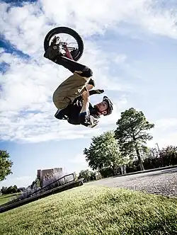 - Au même moment, l'Américain Jacob Spera est le premier à slider une rampe d'escalier en la remontant[65]. À noter qu'il roule en 24 pouces.