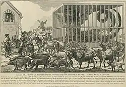 Le , une estampe représentant un monstre est mise en vente, pour 1 livre et 4 sous, chez la dame Boutelou, rue Saint-Hyacinthe, à Paris[1].