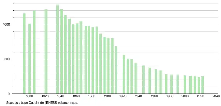 - ↑ Fiches Insee - Populations de référence de la commune pour les années 2006, 2007, 2008, 2009, 2010, 2011, 2012, 2013, 2014, 2015, 2016, 2017, 2018, 2019, 2020, 2021 et 2022.