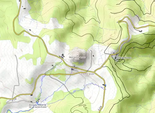 Vue du mont Gerbier-de-Jonc en venant de Saint-Martial au nord-est. | |