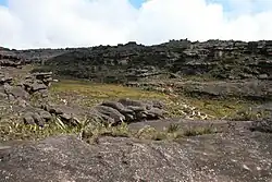 La végétation sur le plateau fait partie de l'écorégion de pantepui et reste largement inconnue[2]. Trois formations végétales s'y côtoient et se développent au milieu de la roche nue : les forêts d'arbres, les forêts d'épiphytes et les savanes sèches ou humides sous la forme de marais[2]. Elle est marquée par de nombreuses espèces endémiques telles que Stegolepis guianensis, Orectanthe sceptrum, Bejaria imthurnii, Stomatochaeta condensata, Thibaudia nutans, Connellia augustae, Connellia quelchii, Tillandsia turneri, Bonnetia roraimae, Epidendrum secundum, des fougères et des plantes carnivores adaptées au sol particulier qui s'y trouve telles que Heliamphora nutans, Brocchinia reducta, Brocchinia tatei, Drosera roraimae, Utricularia quelchii et Utricularia humboldtii[2],[3],[7],[19]. Ces dernières capturent des insectes et y trouvent les nitrates nécessaires à leur développement et absents du sol gréseux et lessivé sur lequel elles poussent[19],[8],[7]. Les forêts qui se trouvent le long des cours d'eau et dans les ravines sont caractérisées par leur faible nombre d'espèces, leurs arbres de 8 à 15 mètres de hauteur et leurs adaptations à des conditions rudes comme des feuilles coriaces[2]. La roche nue est colonisée par des tapis de lichens, d'algues et de cyanobactéries[10].
