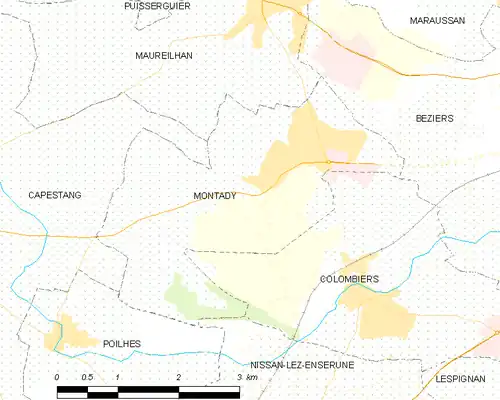 Elle appartient à l'unité urbaine de Montady[Note 2], une unité urbaine monocommunale constituant une ville isolée[I 2],[I 3]. Par ailleurs la commune fait partie de l'aire d'attraction de Béziers, dont elle est une commune de la couronne[Note 3],[I 3]. Cette aire, qui regroupe 53 communes, est catégorisée dans les aires de 50 000 à moins de 200 000 habitants[I 4],[I 5].