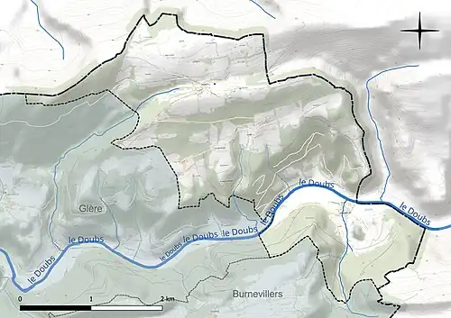 Les communes limitrophes sont Burnevillers, Clos du Doubs, Fontenais, Glère et Haute-Ajoie.