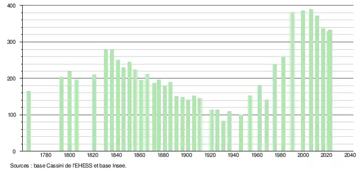 - ↑ Fiches Insee - Populations de référence de la commune pour les années 2006, 2007, 2008, 2009, 2010, 2011, 2012, 2013, 2014, 2015, 2016, 2017, 2018, 2019, 2020, 2021 et 2022.