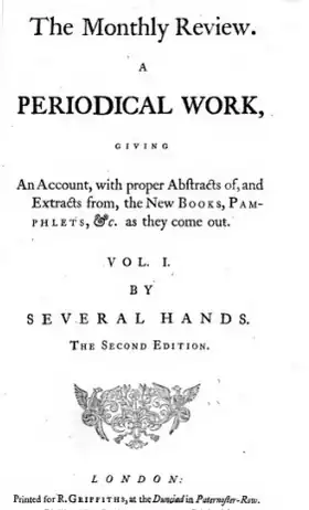 The Monthly Review (1749-1845) est un périodique anglais fondé par Ralph Griffiths (en), un libraire non-conformistes. Il est le premier périodique en Angleterre à proposer des revues d'oeuvres[1]. L'écrivain et poète Oliver Goldsmith y travaille brièvement à partir d'avril 1757. Griffiths lui-même, et probablement son épouse Isabella Griffiths écrivent aussi des chroniques dans la revue, tout en corrigeant les contributions anonymes de Goldsmith, ce qui décidera ce dernier à quitter cet emploi après cinq mois[2].