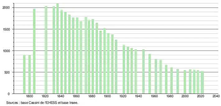 519 hab. (2022 en évolution de −4,95 % par rapport à 2016)
