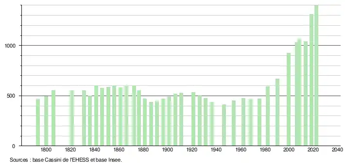 - ↑ Fiches Insee - Populations de référence de la commune pour les années 2006, 2007, 2008, 2009, 2010, 2011, 2012, 2013, 2014, 2015, 2016, 2017, 2018, 2019, 2020, 2021 et 2022.