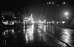 Entre 1981 à 2010, Montréal a reçu environ 1 000 mm de précipitations par an, 784 mm sous forme de pluie et 210 cm sous forme de neige[41]. La date médiane de la première neige se situe du 1er au 15 décembre et celle de la fonte de la couverture neigeuse continue du 1er au 15 avril ; soit un total d'environ 4 mois enneigés[43],[44]. Le jour le plus pluvieux a été le , avec 94 mm enregistrés en une seule journée[41]. La chute de neige la plus volumineuse jamais enregistrée en une seule journée a eu lieu le avec une précipitation de 45 cm[45], alors que sur une période de 24 heures le record a été établi du 4 au 5 mars 1971, avec une précipitation de 47 cm lors de la désormais célèbre « tempête du siècle[46] ». Les 26 et 27 décembre 1969, la métropole du Québec a vu sa plus forte tempête avec plus de 70 cm en 48 heures. La plus grande couverture neigeuse a été mesurée le avec 102 cm[41].