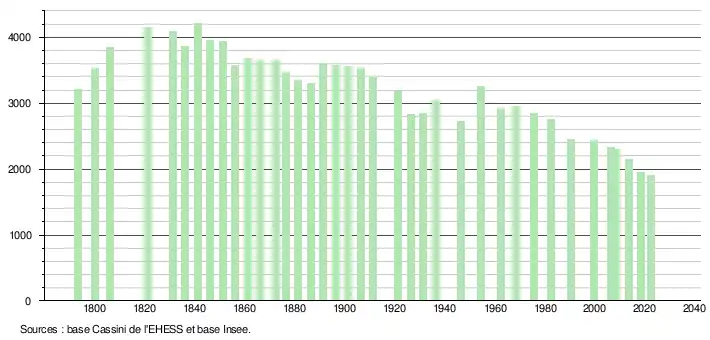 - ↑ Fiches Insee - Populations de référence de la commune pour les années 2006, 2007, 2008, 2009, 2010, 2011, 2012, 2013, 2014, 2015, 2016, 2017, 2018, 2019, 2020, 2021 et 2022.