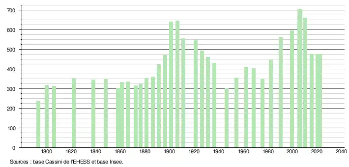 L'IGN met par ailleurs à disposition un outil en ligne permettant de comparer l’évolution dans le temps de l’occupation des sols de la commune (ou de territoires à des échelles différentes). Plusieurs époques sont accessibles sous forme de cartes ou photos aériennes : la carte de Cassini (XVIIIe siècle), la carte d'état-major (1820-1866) et la période actuelle (1950 à aujourd'hui)[Carte 1].