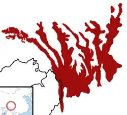 - ↑ 横断 Héngduàn = « transversal », 山脉 shānmài = « montagnes ».