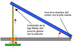 - le suivi du mouvement des objets célestes peut ainsi se faire avec un seul axe uniquement (appelé axe de déclinaison).