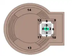 granite, travertin, béton armé et cuivre |