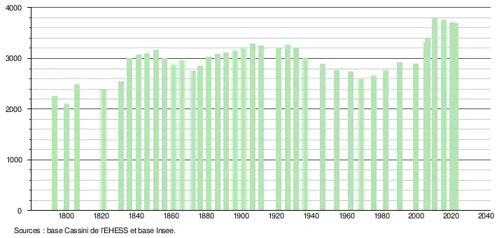 - ↑ Fiches Insee - Populations de référence de la commune pour les années 2006, 2007, 2008, 2009, 2010, 2011, 2012, 2013, 2014, 2015, 2016, 2017, 2018, 2019, 2020, 2021 et 2022.