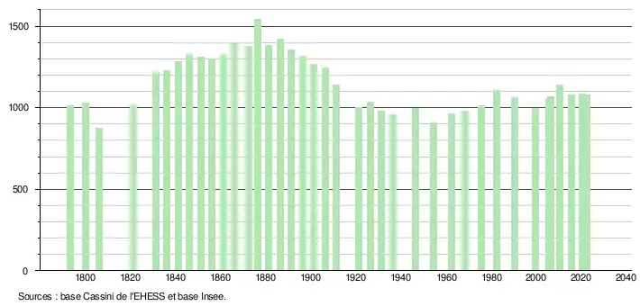 - ↑ Fiches Insee - Populations de référence de la commune pour les années 2006, 2007, 2008, 2009, 2010, 2011, 2012, 2013, 2014, 2015, 2016, 2017, 2018, 2019, 2020, 2021 et 2022.