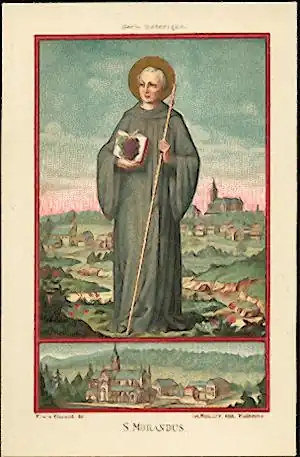Selon les différentes traditions rapportées par ses premiers hagiographes et les Acta Sanctorum[1], Morandus, né dans une famille de nobles germaniques vers 1050 ou 1075 dans le Comté de Wormsgau ou dans la région de Belfort-Héricourt, fut élevé à l'école épiscopale de Worms.