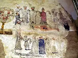 - Couvent de San Francisco. L'église du couvent date du XIVe siècle, et a été repeinte dans le style néoclassique en 1800. Aujourd'hui on peut apprécier le style gothique original. L'élément le plus significatif est la salle capitulaire où l'on veillait les moines défunts. Une fresque représente une danse macabre de la fin du XVe siècle, un motif très populaire à l'époque, avec une roue de la Fortune et un arbre de la vie contre lequel la mort tire des flèches tandis que des rats le rongent à la base. Dans la ronde autour du cadavre, toutes les composantes de la société se donnent la main : noble, reine, roi, pape, cardinal, évêque, moines, clerc, religieuse, paysan, juif, frère dominicain, prostituée, enfant, femme de la noblesse, bourgeois, paysanne. La fresque comprend aussi le texte du poème en ancien français que chantaient les moines ainsi que la partition musicale. Comme le commente l’historien français Jean Delumeau : « Il semble presque certain que le sujet de la danse macabre est né dans la grande pandémie de 1348, et il est significatif que son efflorescence se situe entre les XVe et XVIIIe siècles, c’est-à-dire à l’époque où la peste constituait un danger aigu pour les populations[5]